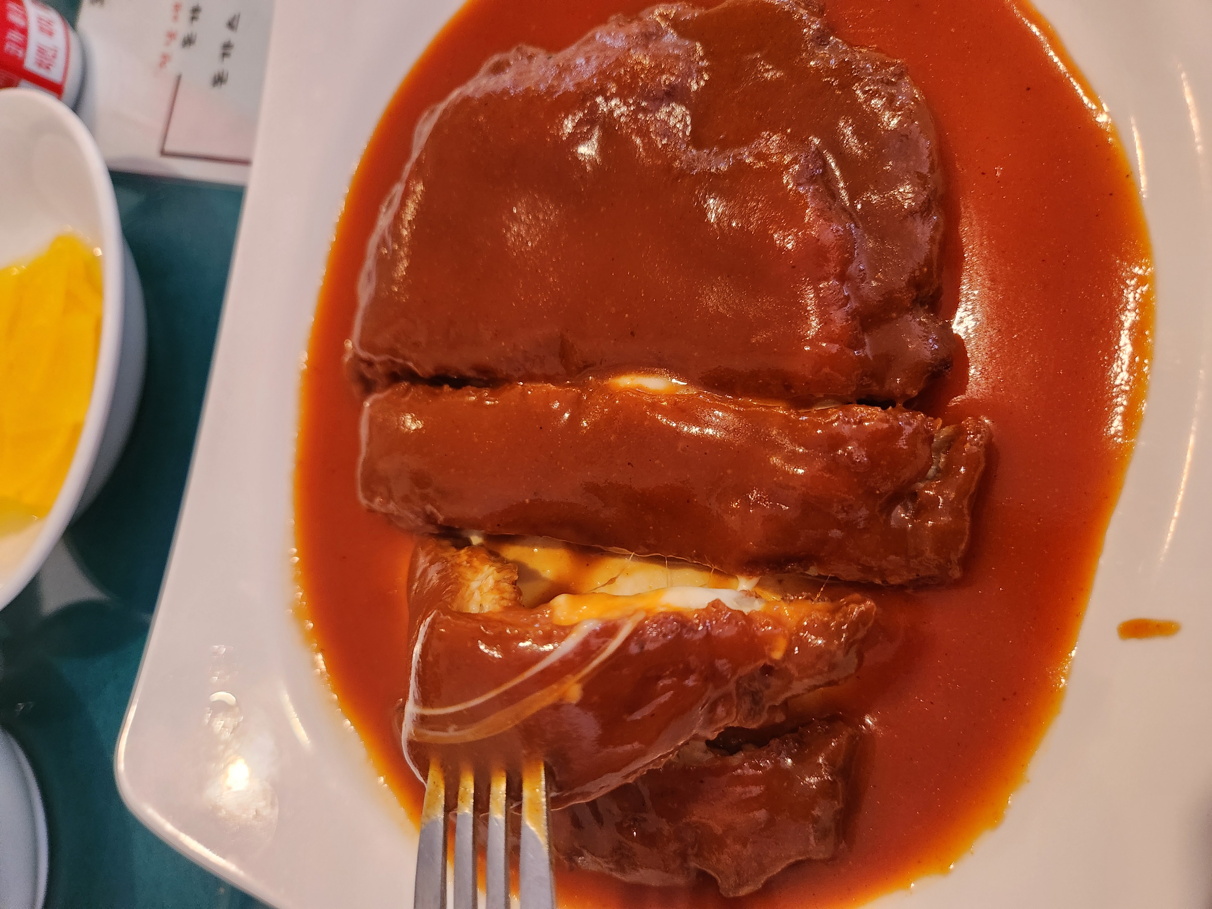접시에는 가니쉬 하나 없는 돈가스로 채워진 단순 그 자체 ㅎㅎ그치만 뭔가 귀엽고 재밌다😆