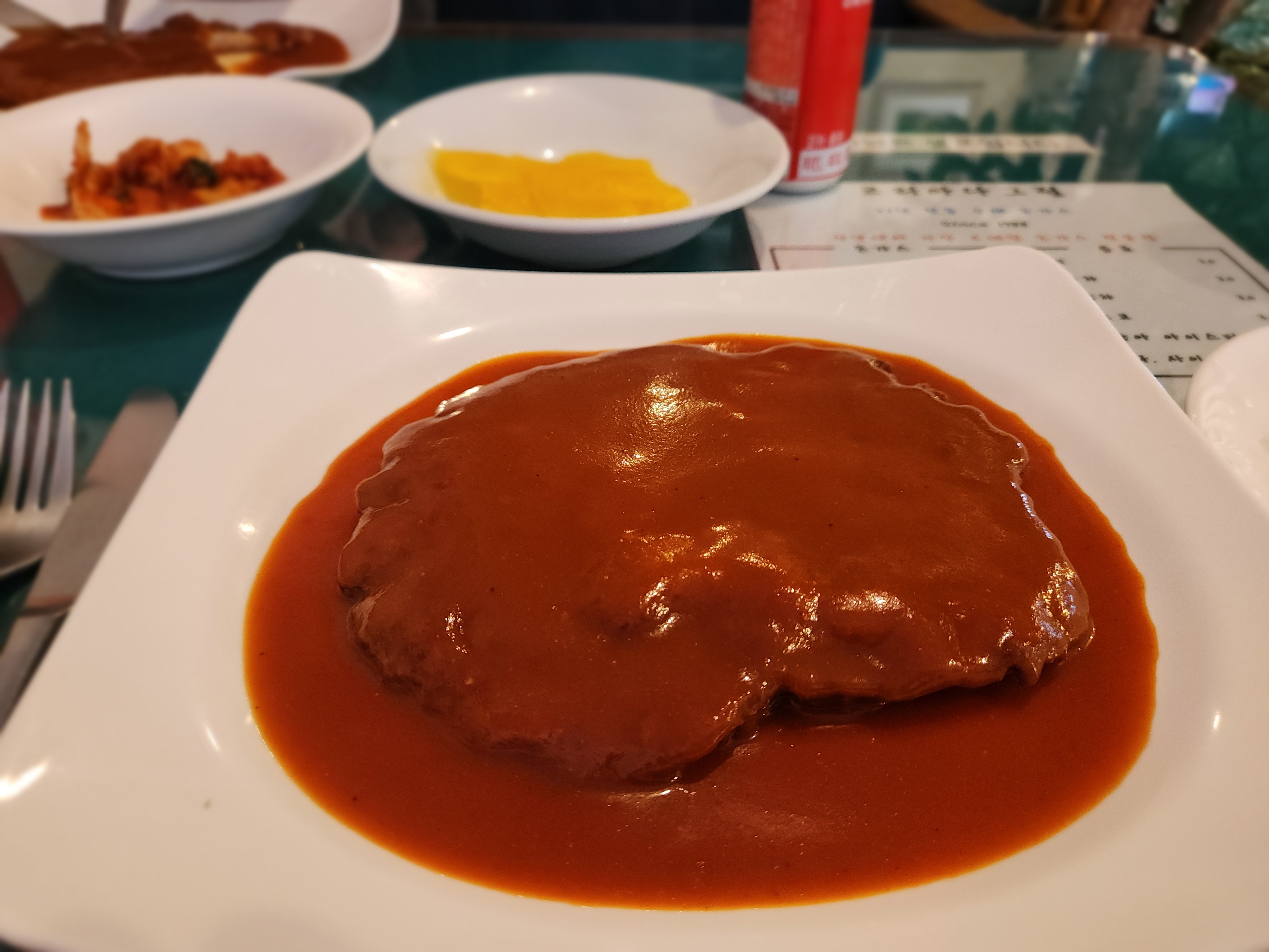 우리가 거의 마지막 손님이다보니 사모님도 여유가 생기셨는지...본인이 돈가스장사를 한 스토리를 구구절절 얘길하신다.